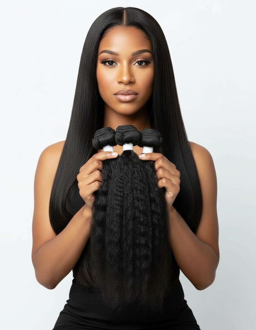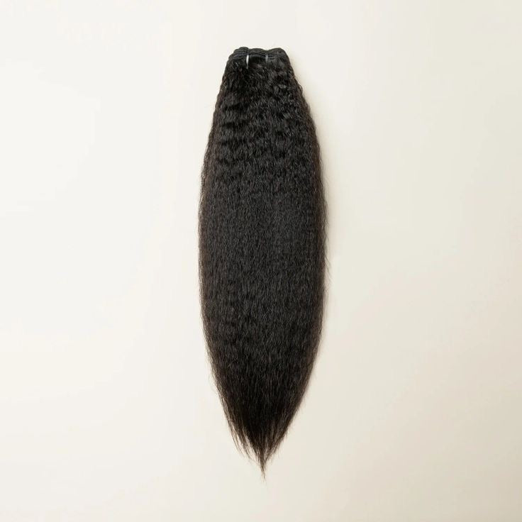 Experience the perfect blend of texture, volume, and versatility with our Kinky Straight Bundles. Designed to mimic the look of blow-dried natural hair, this texture offers a soft, realistic finish with lightweight movement. Each bundle is full from weft to ends, minimal shedding, and can be flat-ironed, curled, crimped, or worn in its natural texture.